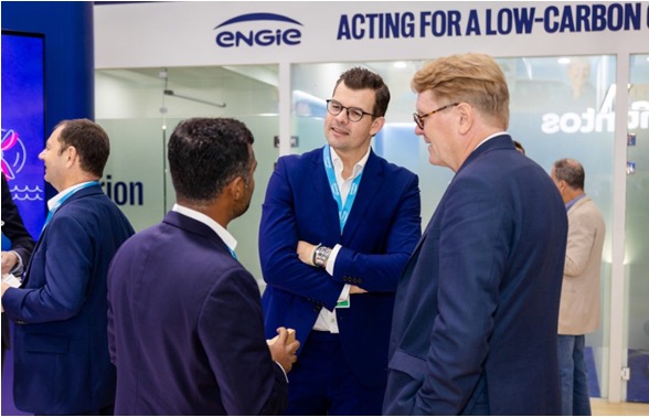 ENGIE was proud to be an exhibitor and presenter at the recent Gastech exhibition and conference in Houston. Gastech is the world’s largest integrated energy conference and exhibition in natural gas, hydrogen, LNG, and low carbon solutions. The event drew more than 50,000 attendees, 1,000 exhibitors and speakers representing 125 countries. ENGIE’s Ken Robinson, president of energy marketing North America, spoke in a session dedicated to Advancing Certified Gas. Shown here at the ENGIE booth is Tobias Davis, ENGIE’s head of carbon origination within energy management.